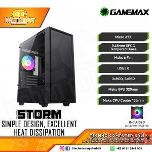 CASING GAMEMAX STORM Black - Mid Tower mATX Case Tempered Glass (Free 1x RGB Fan)